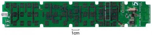当遥控器的应用要求多于15个按键或RF协议、数据包比较复杂时,可以使用SX1230的单片机模式实现。下图显示了一个电路板尺寸是4x22cm的42键遥控器样机照片,这个遥控器同时兼容红外方式。