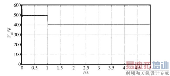 图18示出发生20%电压暂降(即直流母线由510 V下降到400 V左右)时直流母线电压波形。并联超级电容电压暂降抑制装置后,直流母线电压得到了较好的支撑,其电压波形如图19 所示。