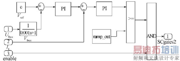 超级电容器放电控制系统采用电压外环、电流内环的双闭环结构(图7 )。利用电压环计算得到电压偏差,之后计算出电流环参考值;电流环根据参考值得到合适的补偿电流,通过传递函数变换得到补偿值。图7中: