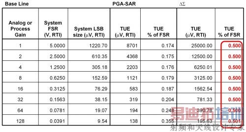 表 1 中,PGA-SAR 系统的器件为 PGA116(可编程增益放大器)、OPA351(运算放大器)和ADS7886(12 位 ADC)。△-∑转换器为ADS1158(24 位ADC)。 在特定的精确度评估中,我们发现两个系统都没有 12 位精确度水平性能,但是 PGA-SAR 组合一般较 △-∑ 转换器更加精确。我对您们找到两个具有相当吞吐速率的系统(其中,在其全部增益范围内 PGA-SAR 系统的精确度一般低于 △-∑ 转换器)表示怀疑。逛逛 TI E2ETM社区,您可以参加其他数据转换器讨论:http://e2e.ti.com/cn/forums/default.aspx