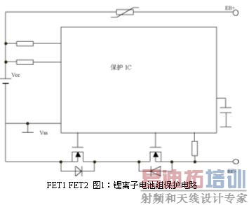 手机电池通常采用由电池保护专用集成IC 和金属氧化物场效应管组成的一次保护电路。保护IC 通过监测电池两端电压以及放电电流来控制FET 的导通或关断,防止过充电、短路、过放电等故障。