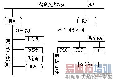 按照国际电工委员会IEC/SC65C的定义,安装在制造或过程区域的现场装置与控制室内的自动控制装置之间的数字式、串行和多点通信的数据总线称为现场总线。根据使用场合和用途不同,现场总线又分为H1低速现场总线和H2高速现场总线。IEC/SC65C最初定义H1总线为用于制造或过程区域的、通过两根传输线向现场装置供电的低速串行总线,H2总线为无需解决两线制供电,用于装置间传送信息的高速串行总线。H1和H2总线相辅相成构成了完整的工业自动化系统信息通信网络。
