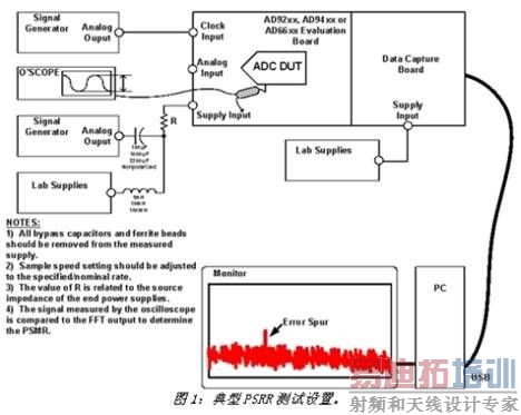 本文介绍对于了解高速ADC电源设计至关重要的各种测试测量方法。为了确定转换器对供电轨噪声影响的敏感度,以及确定供电轨必须处于何种噪声水平才能使ADC实现预期性能,有两种测试十分有用:一般称为电源抑制比(PSRR)和电源调制比(PSMR)。
