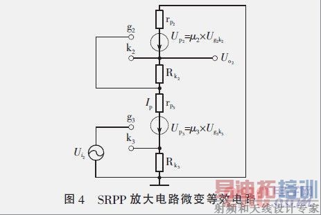 从式(11)~(13)可计算得到SRPP放大电路的输出阻抗为: