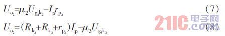 式(2)中Ug1k1为电子管栅极和阴极两端的电压,Uk1为阴极电阻Rk1两端的电压: