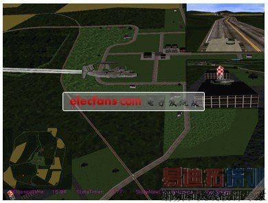 通过对预定仿真目标的分析可知,要实现设想的仿真效果需要分别代表E2C预警侦察机、M1主战坦克、阿帕齐武装直升机、制导导弹等虚拟战场环境中的动态元素模型,同时还需要用于模拟旋转的机翼、发动机和导弹等产生的尾迹、坦克和直升机发生的爆炸、燃烧、烟雾等的特殊效果。虚拟战场环境的三维模型数据库我们使用了预先创建好的OpenFlight模型,E2C预警机的运动完全由仿真应用程序控制,坦克入侵路线可以使用Vega的路径工具事先定义导航路径来控制,而武装直升机的起降、导弹的发射和预警机的失事则通过仿真应用程序与用户通过鼠标和键盘来交互控制。由于导弹发射和预警机坠落时间的不确定性,导弹的运动轨迹和直升机的救援路线则需要在仿真过程中实时的生成。为了更好的反映当前的仿真应用运行情况和虚拟战场态势,仿真应用过程中相关的战场信息需要实时的显示在屏幕上。