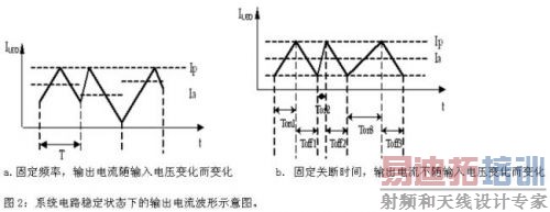 按照PWM调节方式,可以分成恒定频率和恒定关断时间两类(图1)。
