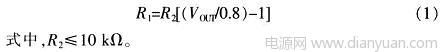 输出电压值的选择较简单,由连接在VOUT和VFR间的2只电阻分压得到。其公式为: