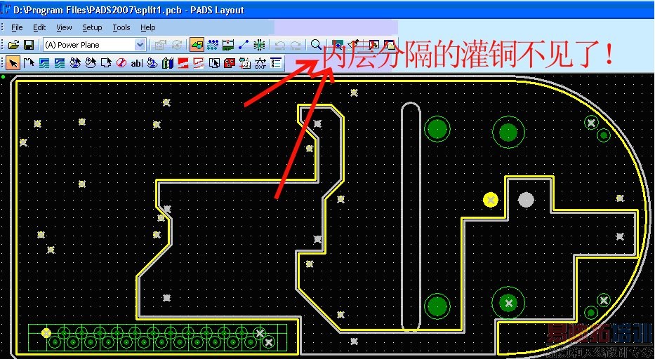 在这个对话框中点击”OK”就能看见以前灌过的铜。但是内层的分割的铜在重新打开后执行这个操作也不能把不见了的铜显示回来!是怎么回事?谢谢!