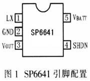 SP6641是一款手持式低功耗-低压-升压型DC/DC转换器,能在输入电压动态范围较大时为单片机系统提供稳定的直流电源,其静态电流极低,电池转换效率高,性价比高,多用于电池供电设备SP6641的静态电流为10μA,有1个0.3Ω的N通道充电开关,最低启动电压0.9V,并具有0.33 A或1.0A感应电流限制模块。SP6641器件采用5引脚SOT-23贴片封装形式,其引脚配置如图1所示。