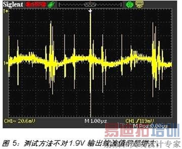 以上各图可以让大家对纹波的相貌大概有个感性认识。被测DC/DC模块输出3.3V与1.9V两路电压