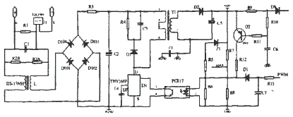 单片开关电源负责将电能转化为电池充电所需要的形式,构成了充电器的主要功率转换方式。与传统线性充电器大损耗、低效率的缺点相比,由美国Power Integrations公司的TNY268P构成的单片开关电源,其输入电压范围宽(85265VAC)、体积小、重量轻、效率高,其有调压、限流、过热保护等功能,特别适合于构成充电电源。其原理图如图1所示。