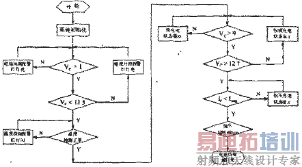 系统软件采用汇编语言编写,并在AVR Studio4环境下编译调试完成。整个系统软件内充电主程序和中断服务子程序组成。主程序主要完成系统、变量及看门狗定时器的初始化.控制系统实现充电功能。单片机完成初始化后,根据电池状况判断应该进入哪一个充电阶段,然后通过AD采样与中断响应完成PWM的调整,实现相应阶段的控制。主程序流程见图4。程序中通过AD中断子程序来改变PWM占空比,定时中断子程序来控制最大充电时间,外中断来判断电池组放电状态。