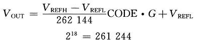式中:VREFH为参考电压上限;VREFL为参考电压下限;CODE为输出数据位,范围0~262 143;G为增益,由GAIN引脚设定。