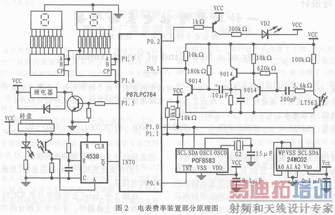 接收手持单元发送的用户购电信息; 将新收到的用户购电信息与费率系统的自有用户用电信息进行合并计算以得到新的信息;●动态计算以得出剩余电量,并在剩余电量到达警戒值时点燃LED管,以提醒用户购电,并在超额用量电达到一定值时切断电源。电表费率系统的电路原理如图2所示。