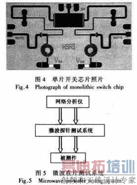 本文采用河北半导体研究所GaAs PIN工艺成功开发出一款宽带大功率单片单刀双掷开关。该单片开关集成了GaAs PIN二极管、电容、电感和电阻元件。在6~18 GHz范围内插入损耗(IL)小于1.45 dB,隔离度大于28 dB;在连续波输入功率37 dBm,12 GHz条件下测试输出功率仅压缩0.5 dB。由于采用单片制作工艺,在具有大功率处理能力的情况下又大大缩减了电路面积。