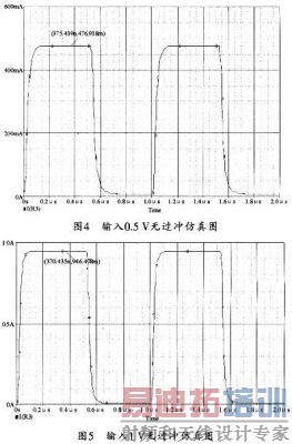 从上述这些仿真结果可以看出,该电路具有较快的上升和下降时间,其数值接近100 ns。