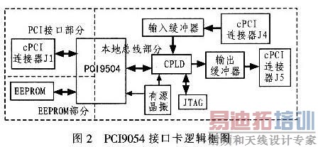 由图2可知,接口卡分为3个部分:PCI总线接口、本地总线接口和串行EEPROM接口。