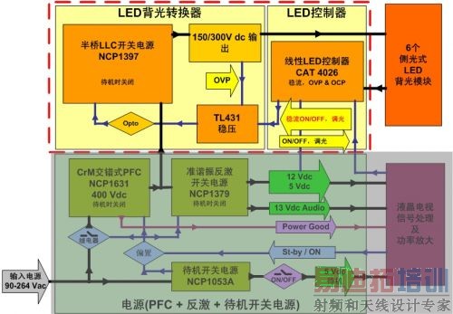 在越来越多的新兴需求和绿色节能趋势推动下,能够提升电源能效的电源和电源管理技术的应用将快速增长,背光就是一种典型的应用需求。虽然目前液晶电视的背光源仍以传统冷阴极荧光灯(CCFL)为主,但随着全球节能环保意识的日益增强,新型发光二极管(LED)背光源已广受关注,成为CCFL的有力竞争者。在便携式应用方面,液晶背光LED驱动方案更需要满足高能效、延长电池使用时间、减小印制电路板面积等要求。本文将结合安森美半导体的解决方案探讨背光市场和应用的特点及需求。 背光应用的需求和挑战LED具有高色彩饱和度、环保耐用等优点,已在各种中小尺寸LCD面板中大量应用,目前正逐步向笔记本电脑、液晶电视等大中型LCD背光源市场渗透。2009年液晶电视采用LED背光的比例仅为3%,在未来三四年内,将可迅速攀升至40%至50%,为开发LED驱动器方案的厂商带来了巨大商机。 与CCFL相比,LED背光源的色彩表现更具优势。LED采用5 V~24 V低压驱动,非常安全,驱动电路设计较为简单,也非常节电。LED不使用对环境有害的汞,也就不存在汞泄漏等问题。LED技术也面临着一些挑战,如发光效率较低、成本高、价格昂贵。随着LCD背光向多种LED技术转移,设计工程师还要应对电源管理、热管理和色彩管理等新的挑战。 目前,汽车电子、移动设备、LCD背光、可寻址标志及通用照明等都是LED技术的潜在应用领域,其中LCD背光将成为LED技术的下一个主战场。 此外,电池供电的便携式应用功能越来越多,尺寸也越来越小巧,使得这些设备的功率需求也越来越高。采用低功率LED驱动器更有助于节省功耗,延长电池寿命,给消费者带来更好的使用体验。 安森美半导体的多样化背光解决方案 1. 中大尺寸液晶电视LED背光方案LED背光液晶电视主要有侧光式和背光式两种方案,其电源管理的重要要求就是提高能效;另外,由于LED背光液晶电视以超薄外型为重要卖点,其电源管理方案更要以低高度来配合纤薄设计,还要顾及散热、降低电磁干扰、不同通道亮度匹配、调光及故障诊断和保护等问题。 (1)侧光式方案:安森美半导体的高性价比多通道线性LED侧光式方案在半桥转换段采用NCP1397初级侧控制器和500 V高压MOSFET NDF05N50,以及6通道线性LED驱动器CAT4026。CAT4026是用于大尺寸侧光式LED背光液晶电视的高性价比多通道线性LED驱动器,可以单颗IC支持6个通道,易于分级为多达12个或18个通道(相应采用2个或3个控制器),目标能效高于90%,典型能效达94%;提供<±2%的极佳电流匹配精度及<1%的400 Hz PWM调光范围,并采用外部功率双极结晶体管实现更好的散热。 该方案由LED背光转换器(NCP1397等)和LED控制器(CAT4026等)组成(见图1),支持低高度LED背光液晶电视设计,电路板上高度低于8 mm,总高度低于12.5 mm,还可以优化处理宽范围调光、散热、故障保护等,使电源设计挑战迎刃而解。
