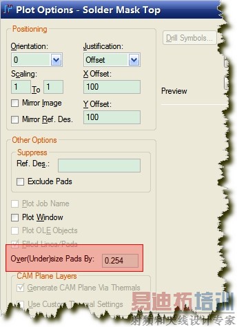 这时阻焊窗的与pad的关系是在这里设置的: