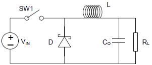 ![]() 图1:直接斩波拓扑 如果不要让设备上的电流被切断,则必须使用能源存储设备来确保当电源被切断时,电流亦不会被立刻切断。一个明智的选择是在设备的电路路径上添加电感。在PWM循环过程中,能量保存在电感中。电源被切断时,保存的能源释放出来,继续为设备供电。这种拓扑称为buck 变换器(buck converter)。图2 是常见buck 变换器的示意图。