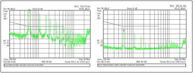 一些传导排放标准,如 EN55011 及 EN55022 设定转换器及电源系统反射到电网的准峰值及平均值;反射传导噪声需要在限制 150 kHz 至 30 MHz间。要符合这些要求,所有高峰频谱上的传导噪声,必须低于规定的限度。
