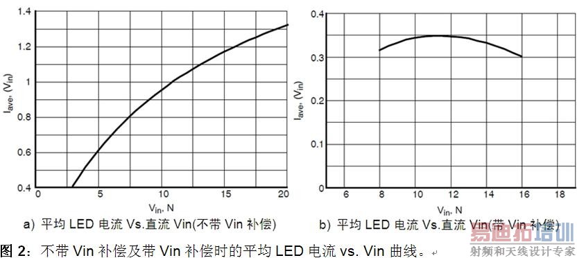 其中,Ivalley是最低电感电流点。将平均电流(Iave)与输入电压(Vin)之比绘成波特图即可得到动态曲线(见图2a),可能会导致LED光输出大幅变化。