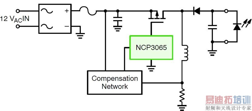 R7和D5增加了流至Ct时序电容C2的电流。这有效地限制了NCP3065可提供的最大占空比。当条件允许低占空比时,R7和D5就使高于所需值的占空比不会出现。在关闭期间,需要D7来阻隔电压,因为这是降压-升压拓扑结构。更多有关脉冲反馈补偿的信息参见安森美半导体的NCP3065数据表。