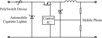 便携式电子设备,例如蜂窝电话、PDA和手提电脑的电源都有特殊的过流保护要求。这些设备一般是通过AC/DC电源适配器供(充)电,将市电或未经稳压的直流电转变为合适的低压直流电。由于越来越多的人开始在零配件市场上购买电源适配器以及所谓的通用充电器,将不兼容或有故障的电源适配器应用于便携式设备的可能性也就大大增加。由于电源适配器的电压、极性以及电流都可能与该设备的电路规范不相吻合,从而将会导致设备损坏甚至带来安全隐患。