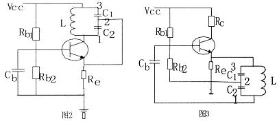 注意观察图2和图3,电容二点式电路中选频网络的2端是电容与电容的结点,1和3端是电容与电感的结点,所以分析电容三点式振荡电路的相位条件时只需要看选频网络的2端是否直接或者通过一电阻与发射极(或者场效应管的源极)相连,l和3端是否直接或者通过一电阻与基极和集电极相连。图2中符去掉基极电容Cb相位条件仍然满足,电路只要振幅条件满足仍可振荡。