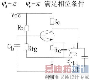 先看图2,图2中晶体管的发射极接的是三点式选频网络的2端,集电极接的是1端,基极在交流通路中接地,所以基极相当于接的是3端。发射极与基极问接的单个选频器件是电容C2,发射极与集电极之间接的是电容Cl,发射极与其他两个电极之间接的是电抗性质相同的电容,所以射同已经满足;基极与发射极接的电容C2,基极与集电极之间接的单个选频器件是电感L,电感与电容是两个电抗性质相反的器件,所以基反也是满足的,图2电路支流通路正常,又满足射同基反的条件,所以是可以振荡的。