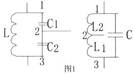 我们知道,三点式选频网络中应该有两个电容、一个电感或者两个电感、一个电容组成,如图1所示,为方更叙述,现把选频网络中每两个电抗器件的结点给出一编号。