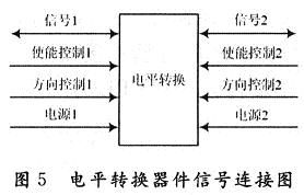 由于DSP的接口电平为3.3 V,CPLD和PC19052接口电平为5 V,为了将两部分兼容起来,需要使用电平转换缓冲芯片。如图5所示该器件有两个供电电源、两个方向控制端、两个使能端。通过连接不同的电压源可以为器件的信号引脚提供不同的电平。
