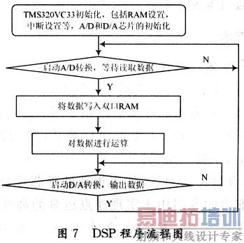 A/D和D/A芯片通过电平缓冲期间与DSP的地址数据总线连接,由DSP芯片负责A/D和D/A的初始化以及读写控制。