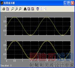 首先,设模拟信号是周期为2的Sine波,且用连续的时间函数f(t)表示,采样就是周期地取f(t)的瞬时值。根据采样定理,对每个周期的模拟信号采样32次,则采样的时间就为0.0625(2/32)的倍数。完成一个周期的采样时间为0.0625*n(0<=32,n 为整数),延时为0。采样后将相应值输出,但信号在量值上仍然是连续的,需将f(nT)的所有值映射到数字量所表示的状态上,这种过程为量化。在量化过程中是将样本的幅值范围分为若干个量化层,每一个量化层对应一个量化输出,所有落在该量化层内的样本都统一取该量化输出值。本实例中,采用4位编码,则有 24=16个量化层。在编码过程中采用从1000到0111的编码,来输出相应的量化值。其源代码如下: