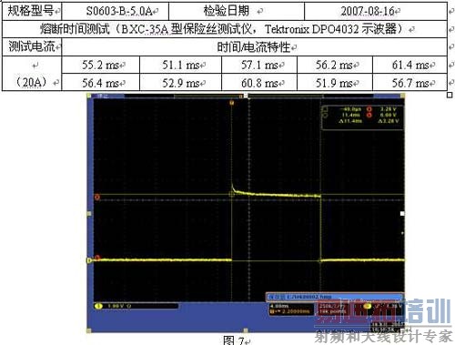 (1)测试S0603-B-5.0A保险丝在20A熔断时间如下表