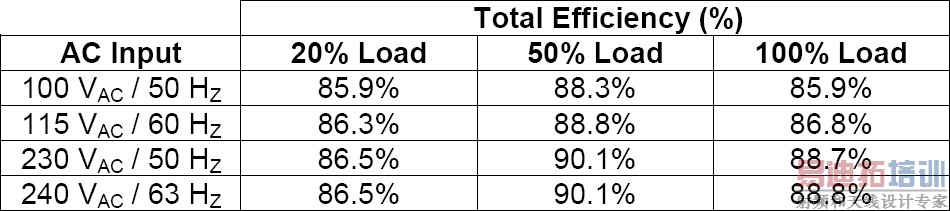 这参考设计实现所有负载条件下高于85%的能效,符合80 PLUS银级能效要求,见表2。