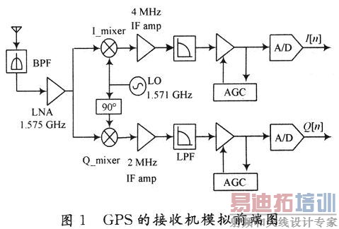 模拟电路需要对信号进行放大或衰减,这一功能可由可变增益放大器(VGA)实现。它在无线通信的收/发信机模拟前端中,起着至关重要的作用。图1是用于GPS的接收机模拟前端图。处于基波频率的VGA补偿射频模块和中频模块的增益衰减;VGA将输出信号放大到A/D转换器需要的幅度。AGC环路改变接收机的增益,调整各级信号动态范围,稳定输出信号功率的作用。