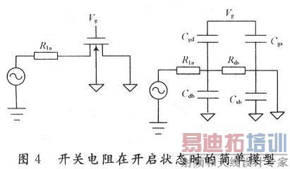 如图4所示,可变电阻R1是用多晶硅电阻和工作在晶体管区的MOS开关来实现的。开关电阻通常被用在低失真可调模拟模块。MOS晶体管的非线性将产生谐波以及交调失真,这将会降低整个电路的线性度。在文献[11]中,推导出一个近似的公式来接近开关管的非线性特性。
