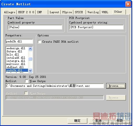 2. 在Orcad中产生网表文件,网表文件名暂时取名为test.asc