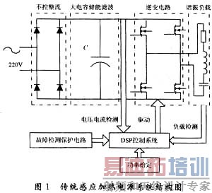 这种传统感应加热电源由于采用大电容无源滤波,造成输入电流畸变,对电网造成谐波污染,输入功率因数降低,而且不利于节约用电成本。为了提高能源利用率,减少感应加热装置对电网的污染,必须采用有源功率因数校正技术。