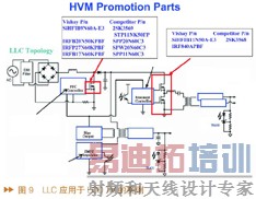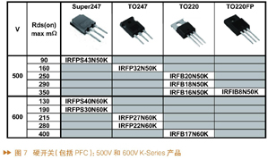 图9所示为一个采用LLC的LCD TV应用,其中用红色圈起来的部分为针对PFC的MOS和半桥共振的MOS所推荐的型号。在半桥共振部分,实际应用中选择500V的MOS即可。