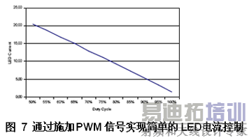 图7显示了LED电流作为控制LED亮度的PWM占空比的一个线性函数。