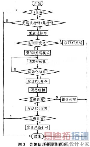 短消息模块无线传输分为告警信息主动上传和被动召唤。告警信息是主动上传,而遥控、遥测和遥调则是通过短消息召唤或控制实现的。告警信息处理流程如图3所示。