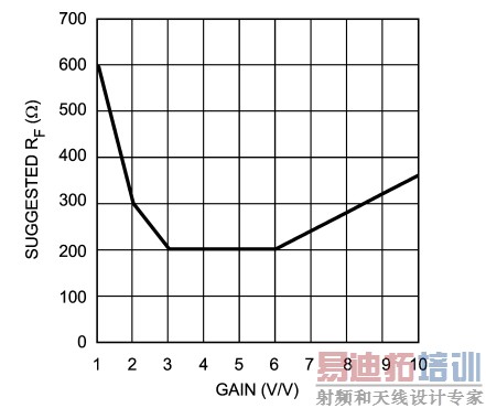 | 图3:建议反馈电阻与正相增益的关系 |
