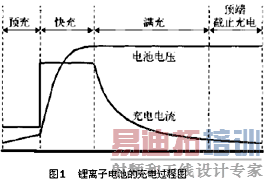 虽然锂离子电池有以上种种优点和良好的市场前景,但它对充电电路的要求比较高,在使用过程中要避免出现过充电和过放电的现象。锂离子电池的充电过程如图1所示,在一个充电周期内,锂电池在充电开始之前需要检测电池的电压和温度,判断是否可充电,如果电池电压或温度超出允许范围,则禁止充电。每节电池的允许充电电压为2.5-4.2V,温度为2.5-50℃。在电池处于深放电的情况下,必须要求充电器具有预充过程,使电池满足快速充电的条件,然后根据电池厂商推荐的快速充电速度对电池进行恒流充电,电池电压缓慢上升;一旦电池电压达到所设定的终止电压(一般为 4.1V 或4.2V),恒流充电终止,充电电流快速衰减,充电进入满充过程;在满充过程中,充电电流逐渐衰减,直到满充时间超时,转入顶端截止充电;顶端截止充电时,充电器以极小的充电电流为电池补充能量;顶端截止充电一段时间后,关闭充电。