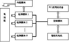 监测装置与充电机互动是本方案研究的一个重要内容,是提高劣化程度预测准确性的创造性工作模式,其基本结构如图1所示。