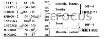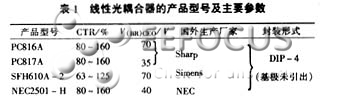 线性光耦合器的典型产品及主要参数见表1,这些光耦均以光敏三极管作为接收管。