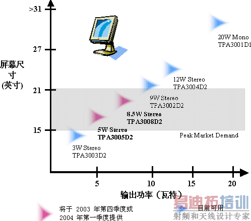 为了满足各种平板显示器尺寸的需求,目前有几种新型的D类APA可供选择,请参见图三。当为平板显示选择APA时,输出功率是应当考虑的主要规范。平板显示器越大,所要求APA的输出功率也就越大,因为最终用户观看屏幕内容时距离屏幕的距离会加大。