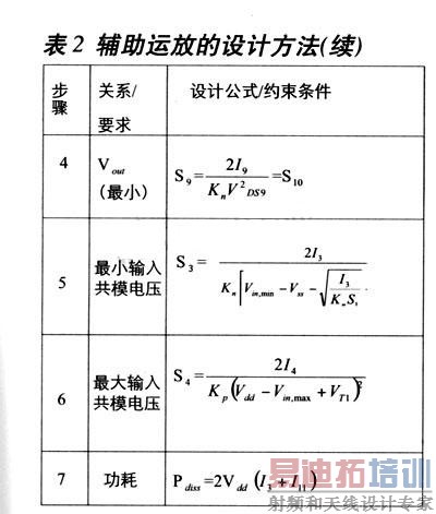 折叠式共源共栅辅助运放的设计方法如表2所示,其中设宽长比Sn=(W/L)n。 仿真验证和结论